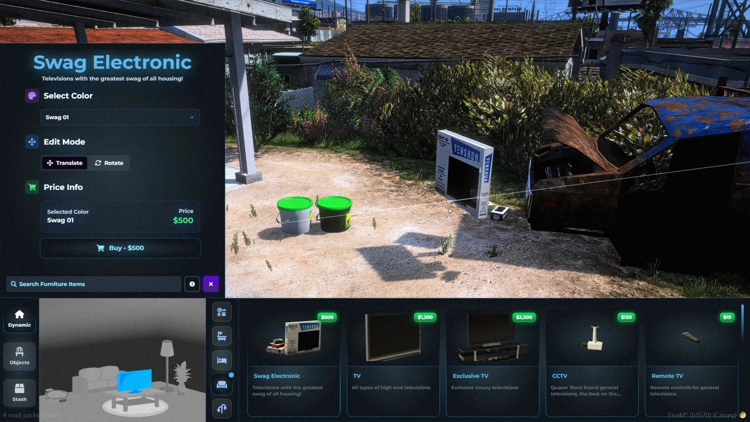 Fully customize your territory using shells, IPLs, or MLOs. Decorate both interior and exterior spaces with the advanced Quasar Housing decorate system, creating unique gang bases and immersive environments.