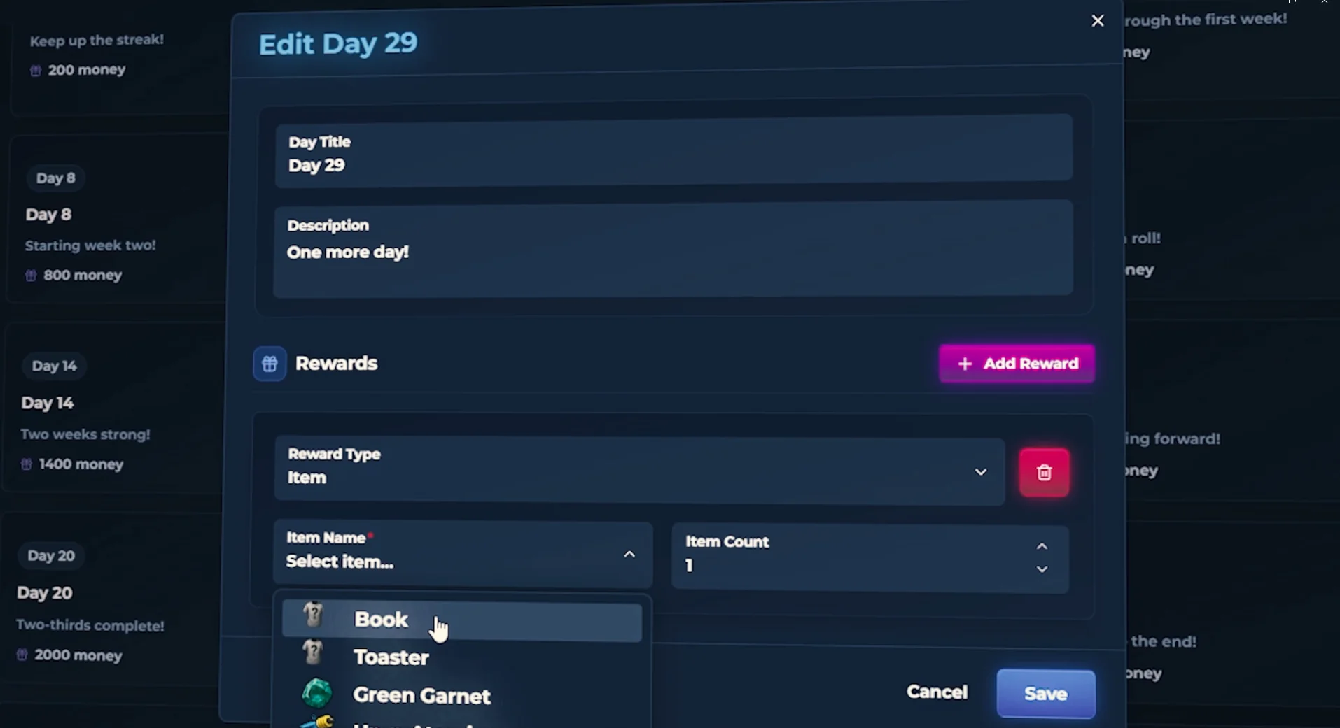 Each reward slot can contain any combination of items, cash, or vehicles, allowing unique daily surprises tailored to your community.
