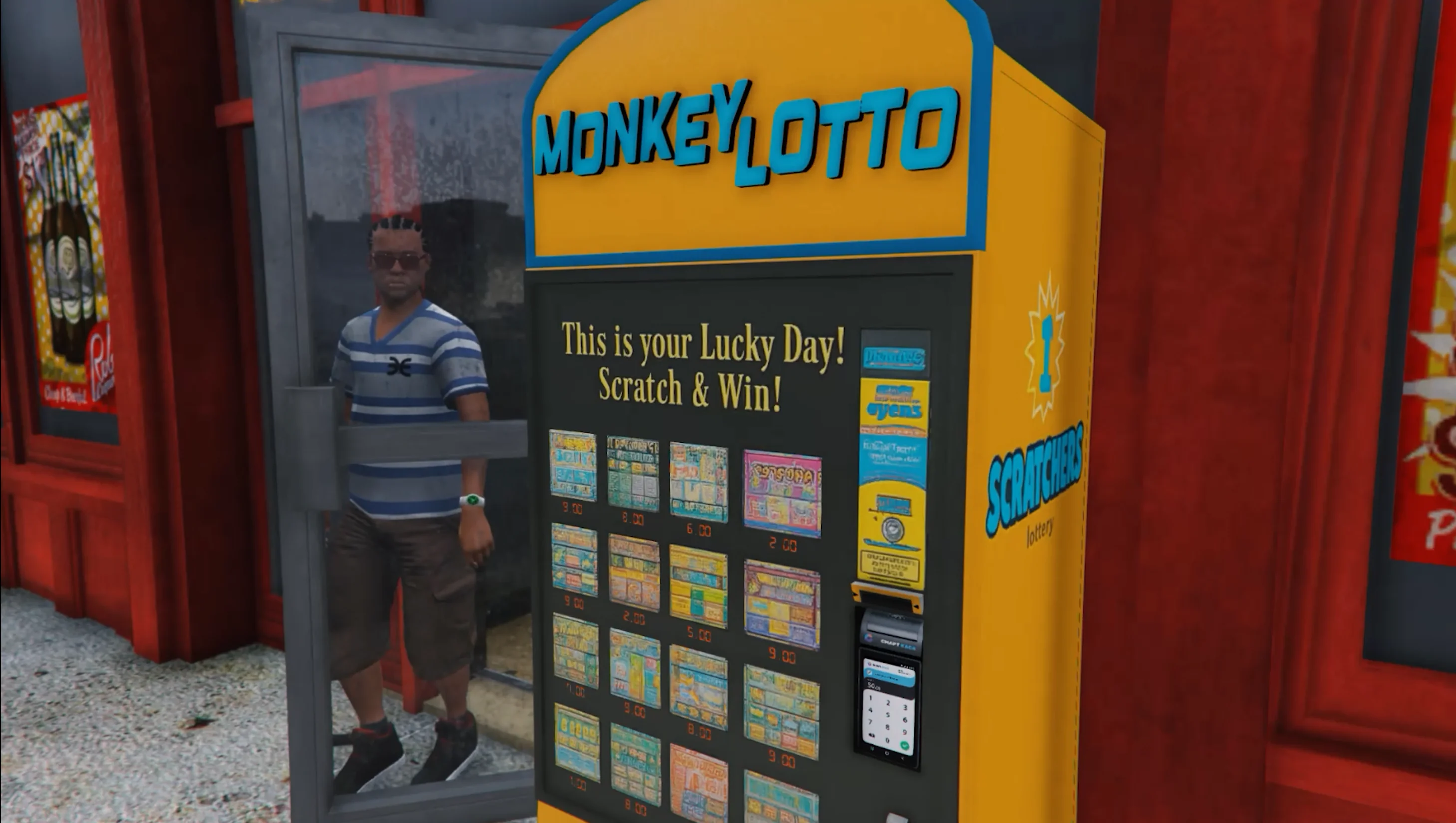 Players purchase tickets and scratch them manually using a coin mechanic. The surface slowly clears as they scrape, revealing the result in a tactile and immersive way. This small interaction makes the experience far more engaging than simple menu-based systems and encourages players to try their luck again.