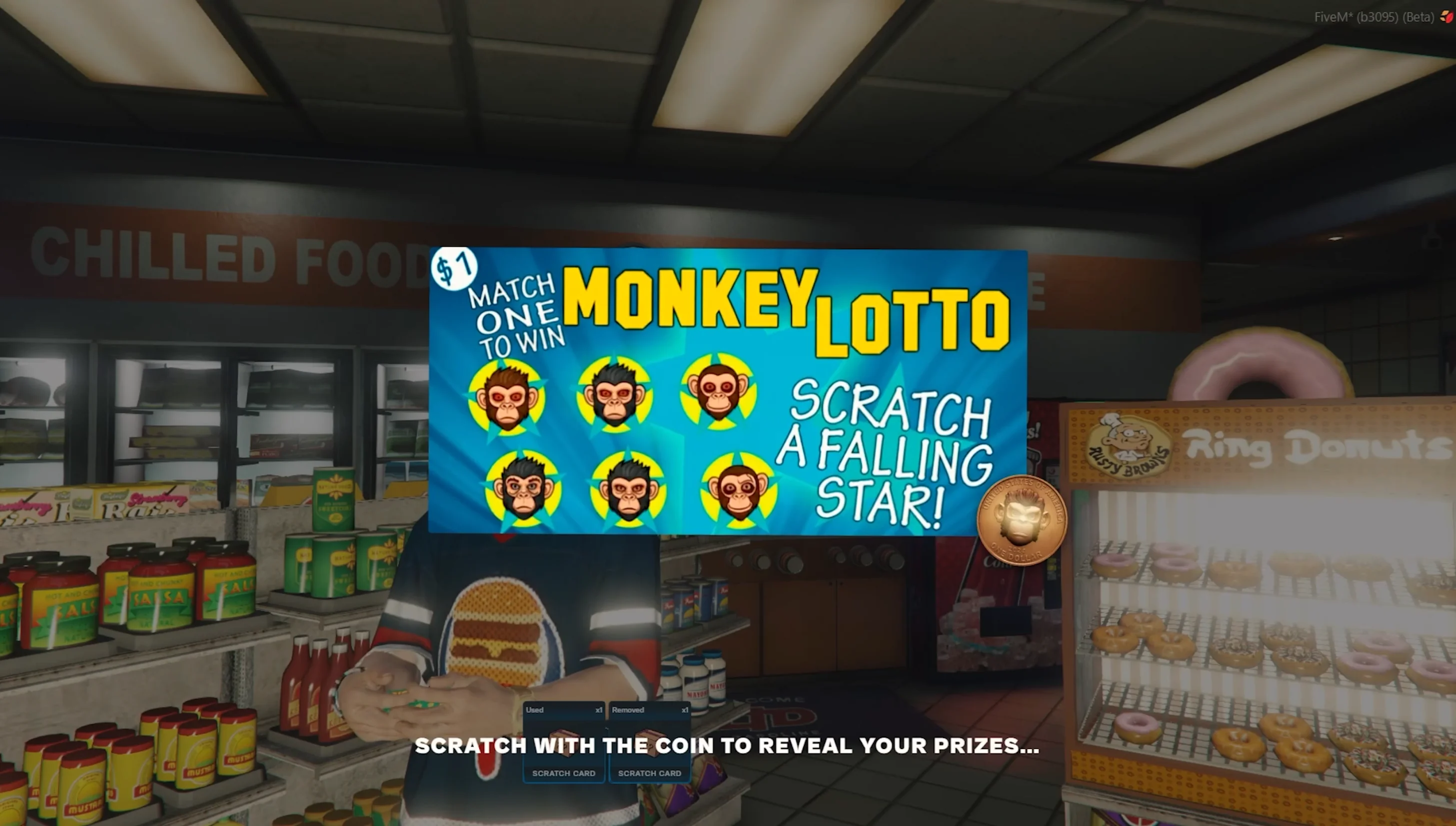 A complete lottery framework that lets servers place interactive machines selling fully scratchable tickets. Each coupon features a highly realistic scratch-off mechanic using a coin, creating an addictive and immersive experience. Custom props enhance visuals, making every ticket feel physical and rewarding.