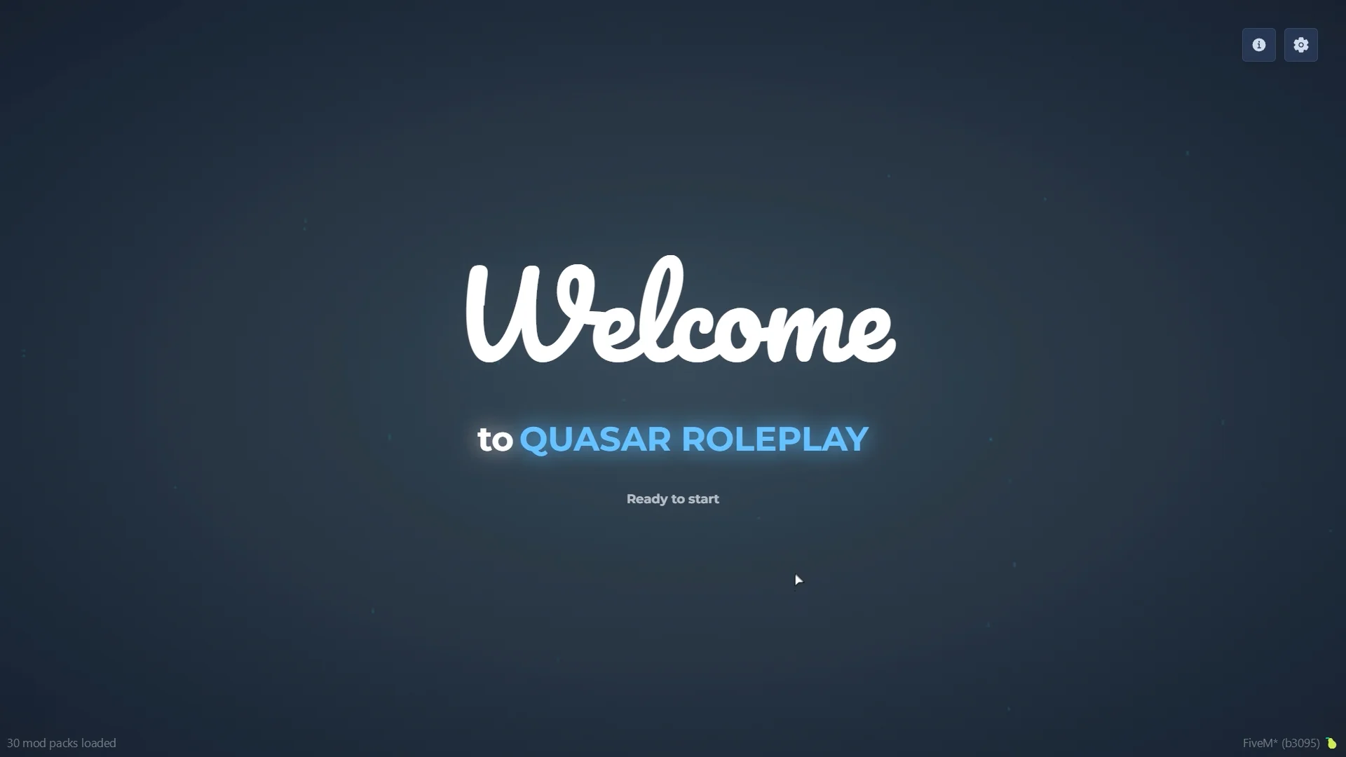 Quasar Multicharacter 2.0 begins with an interactive welcome screen where players press a key to start their journey. A clean introduction message welcomes them to the server, setting the tone for immersive roleplay and guiding players smoothly into the character creation experience.