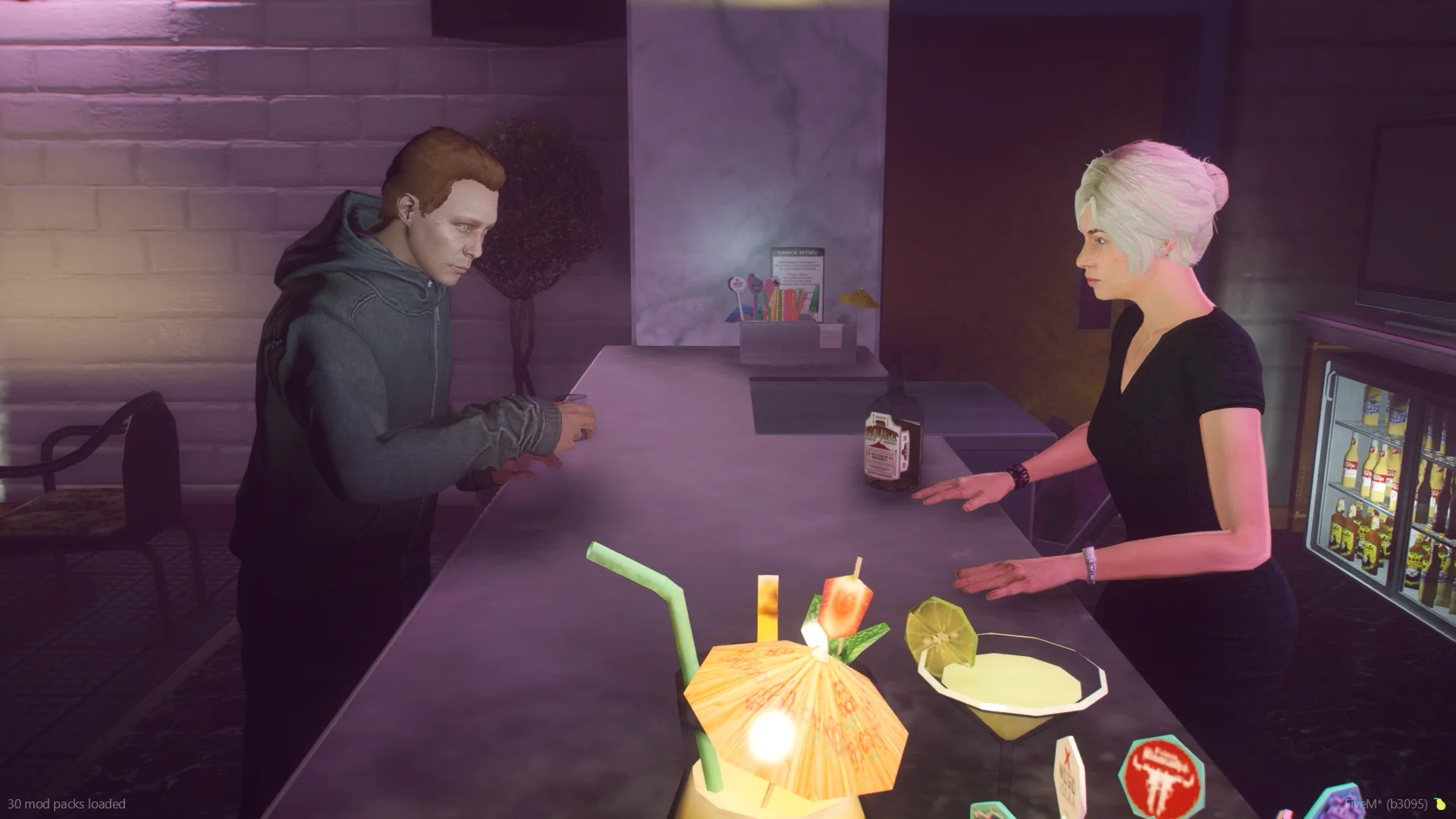Players can experience unique intro animations before character selection. Scenes such as a lively bar, a dancer performance, and street graffiti visuals create a cinematic atmosphere that immediately immerses players into the world of the server.