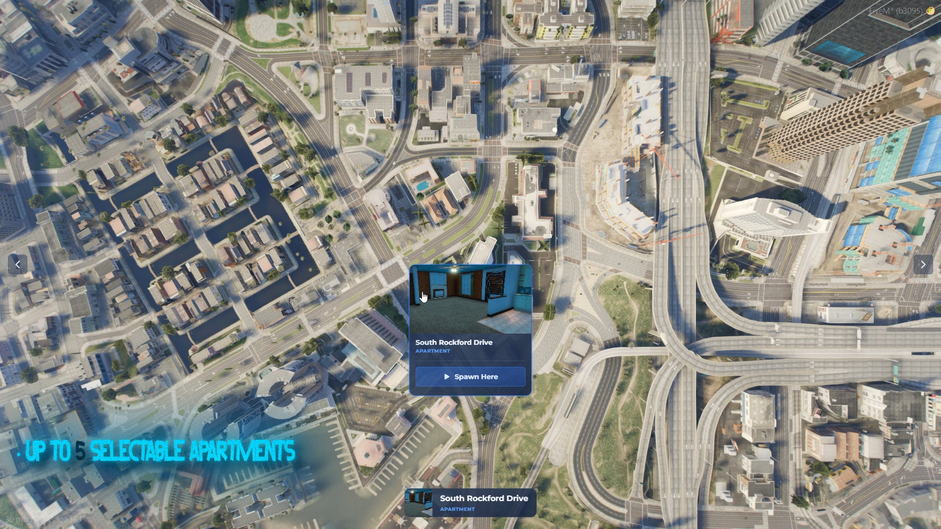 The advanced spawn selector allows players to choose where their story begins, improving onboarding and giving servers more control over roleplay entry points. Locations, layouts, and visual elements can be configured to match the server’s design and roleplay structure.