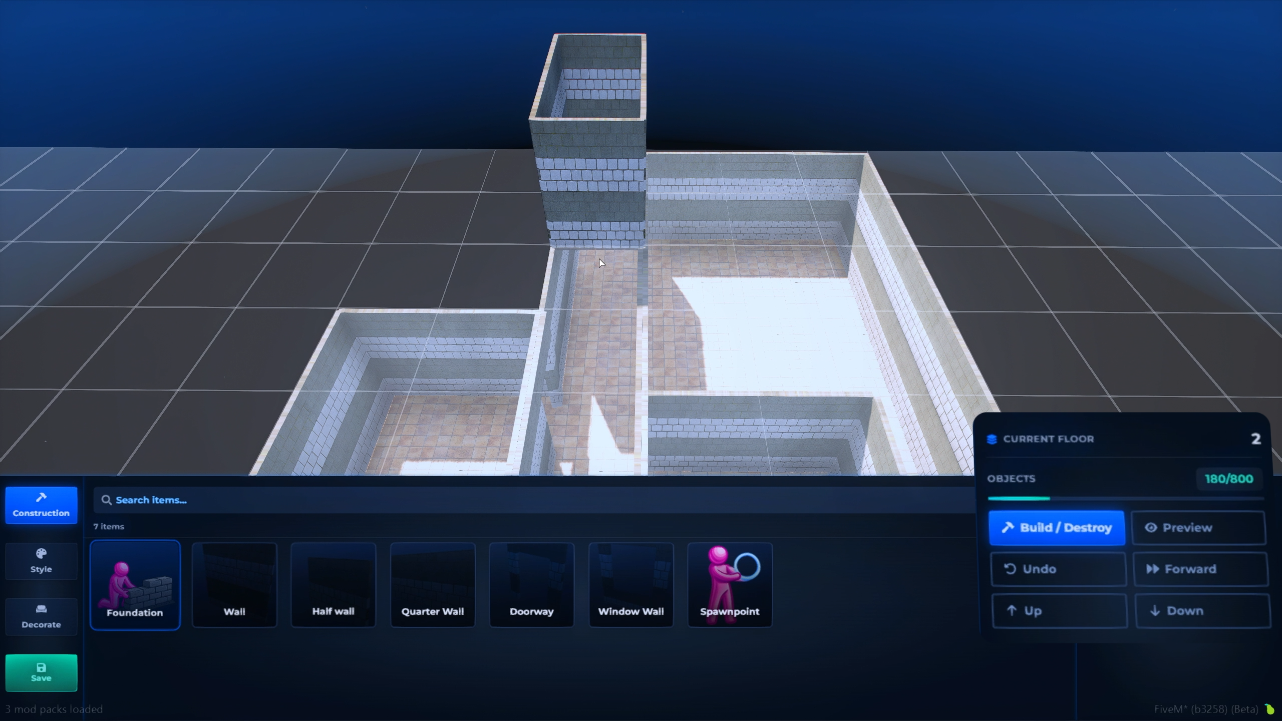Quasar Shell Creator allows multi-floor interior building for FiveM ESX, QB, QBCore and QBox servers without artificial restrictions. Create apartments, offices, hotels, and complex buildings with multiple levels, giving full freedom to design vertical interiors for premium roleplay housing content.