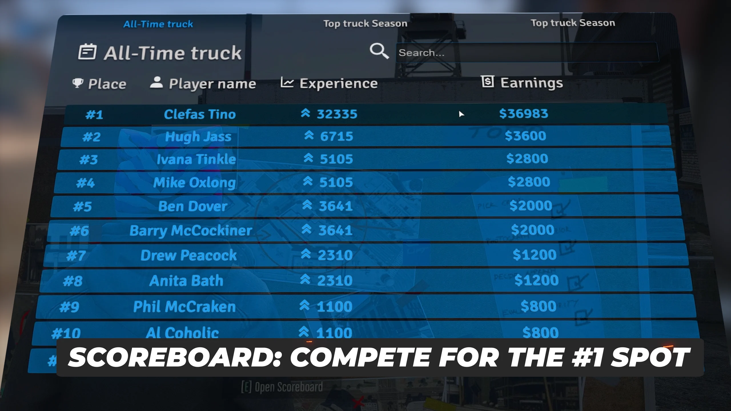 A ranking system highlights the top truckers based on deliveries, earnings, or XP, encouraging competition and consistent gameplay.